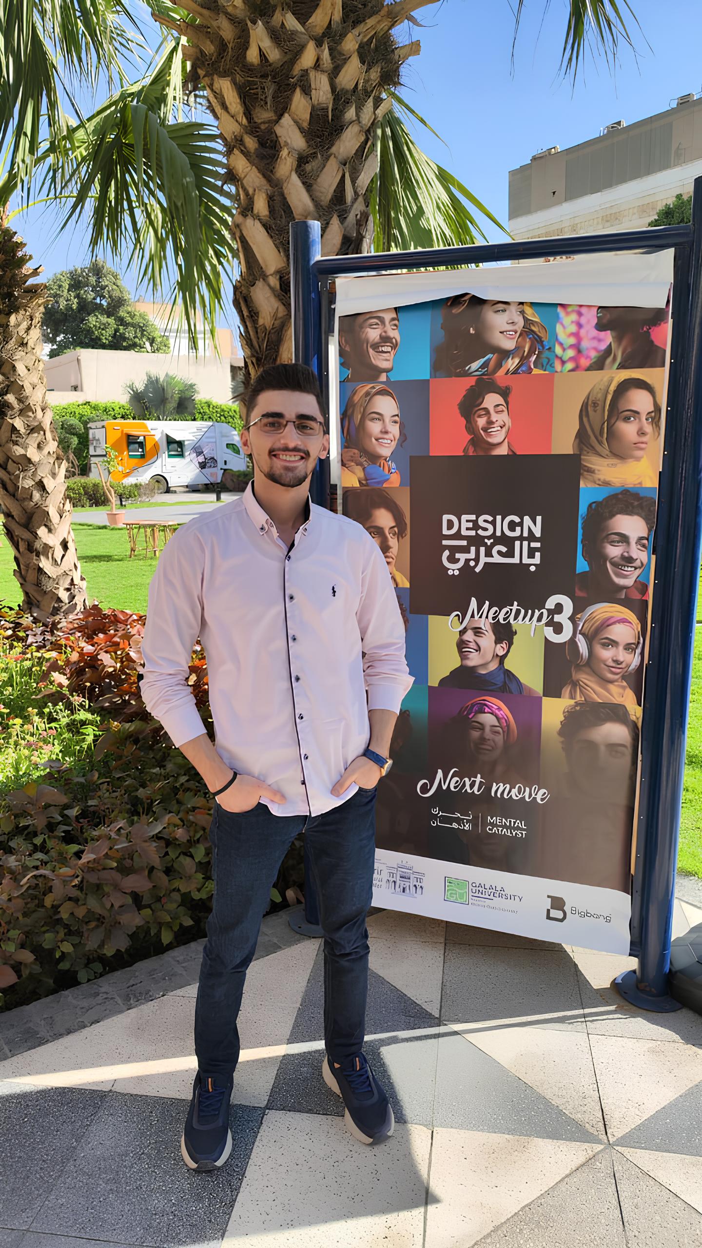 بدأت قصتي في صيف 2022 بعد أن أنهيت دراسة البكالوريا ( الثانوية العامة ) بمعدل 90.1%، طلب مني أحد اقاربي أن اتعلم التصميم لكي أساعده في تلبية متطلبات عملائه ، حيث كان يعمل في التسويق الالكتروني للمتاجر والافراد، ومع سرعة تعلمي وعملي المباشر معه أوقفت دراستي في كلية الهندسة في دمشق لكي اتفرغ للتصميم حيث كنت اقدم خدمة تصميم هوية العلامة للشركات والأفراد،